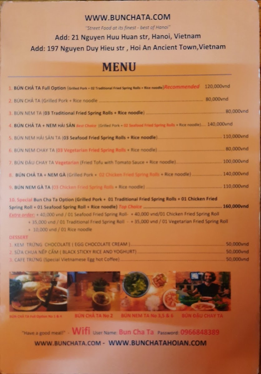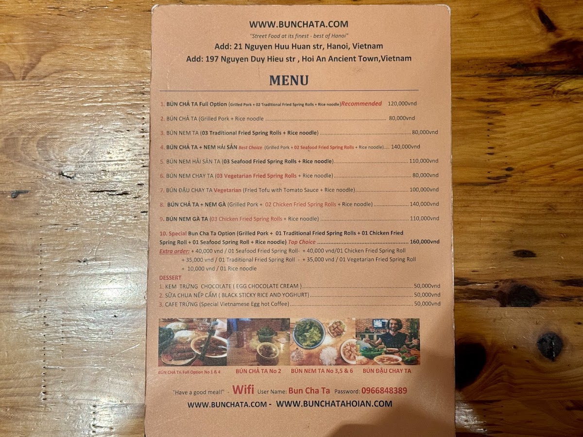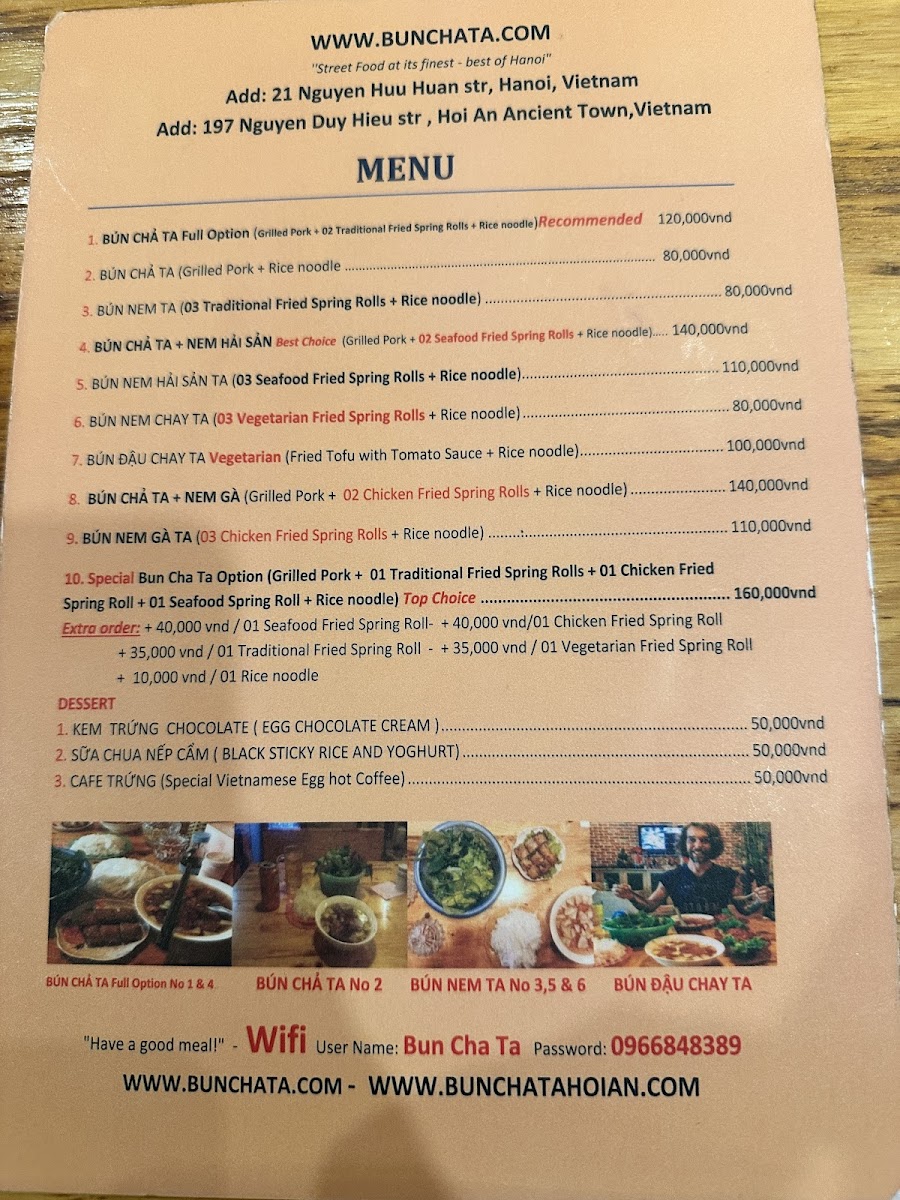 “ Bun Cha Ta was the first meal we had in Vietnam and it was divine! The bun cha set comes with noodles, braised pork and broth, greens and spring roll - really hearty! And simply delicious! Also tried the egg coffee which was yum, and passion fruit juice which was on the sweeter side. Very nice staff too. We sat downstairs, but they have ample seating upstairs - thought it looked a bit dark. Overall would totally recommend! ”